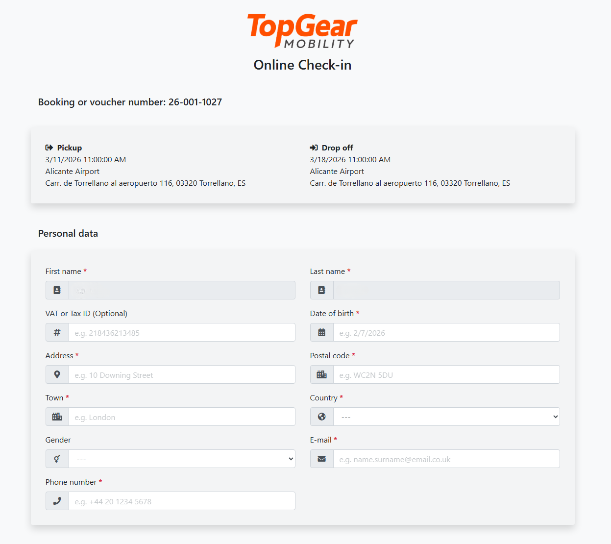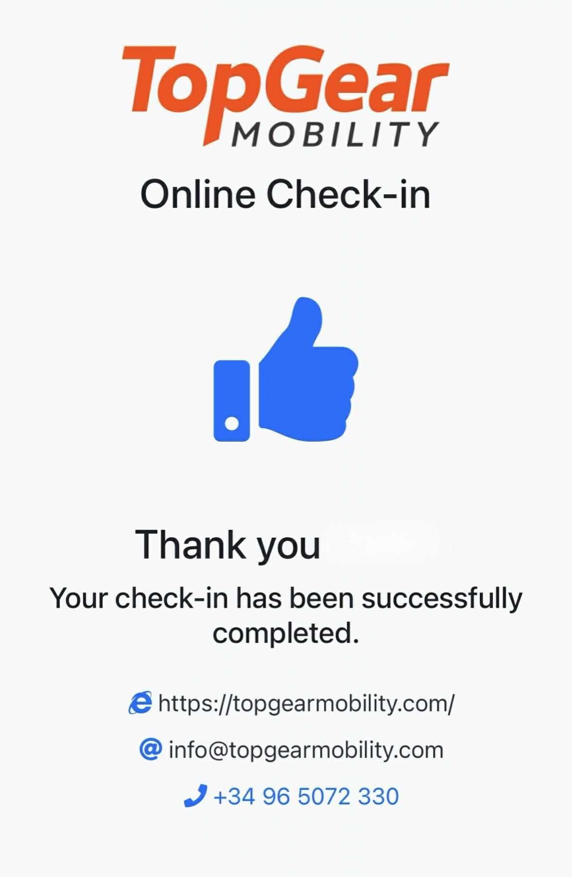 Go to the Top Gear website and click the "Check-in" button, or open the link provided in your confirmation email.